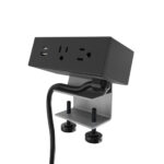 Edge mount unit with power and USB charging and aluminum housing.