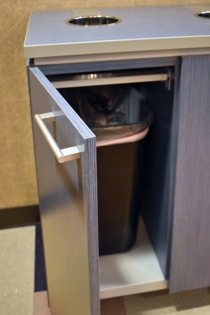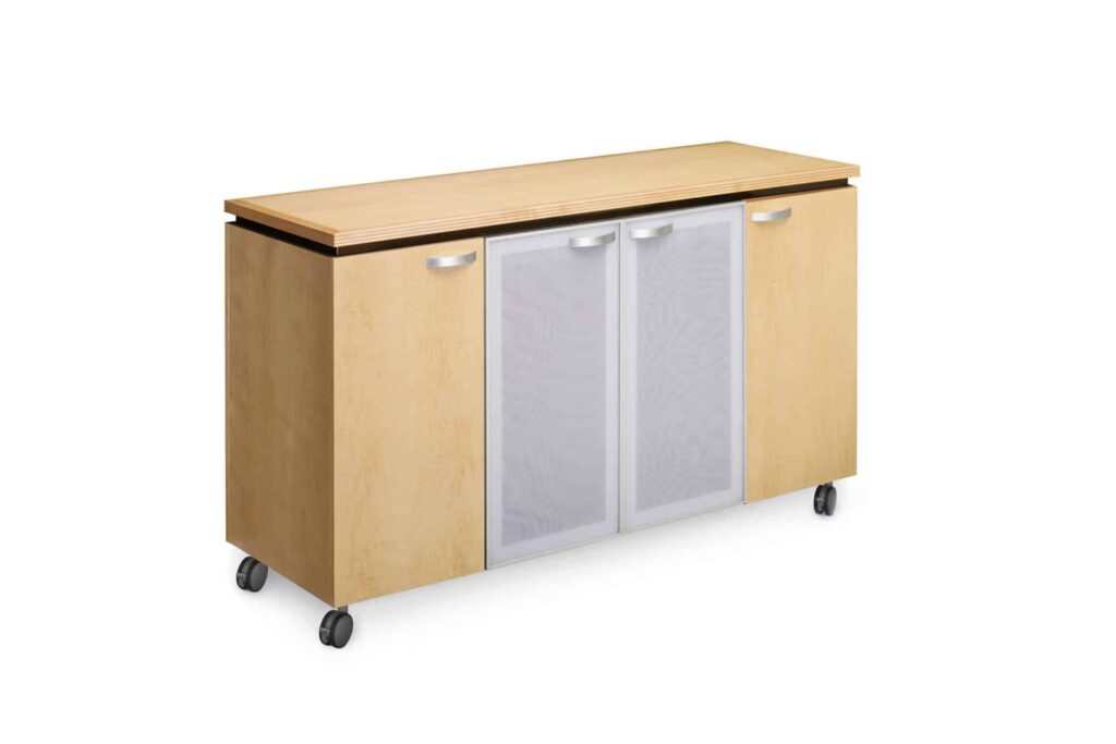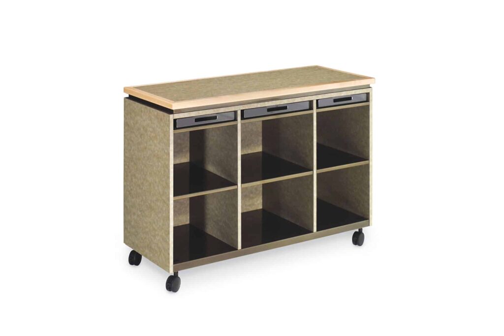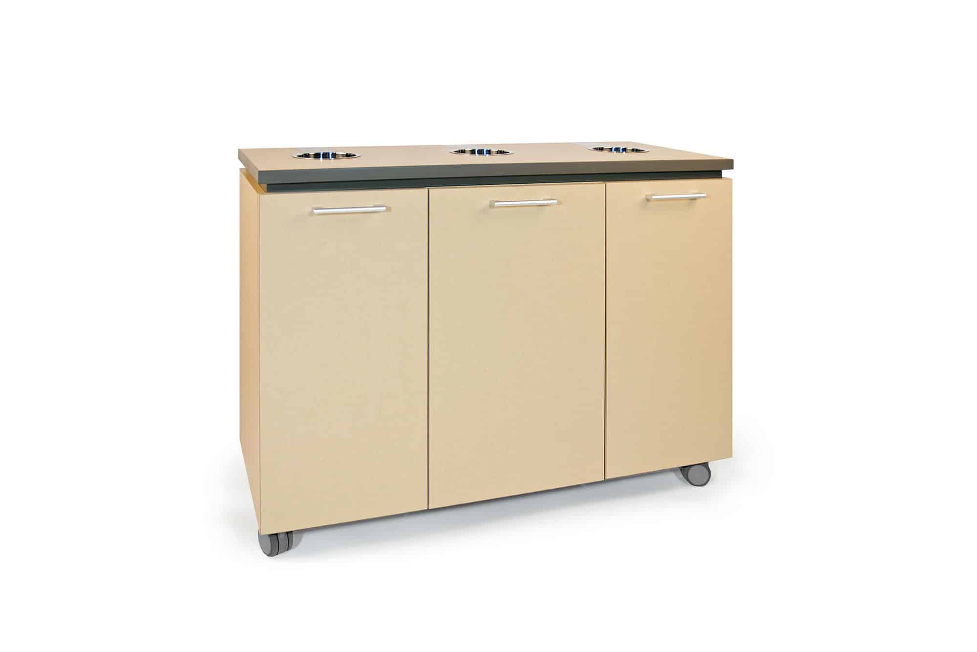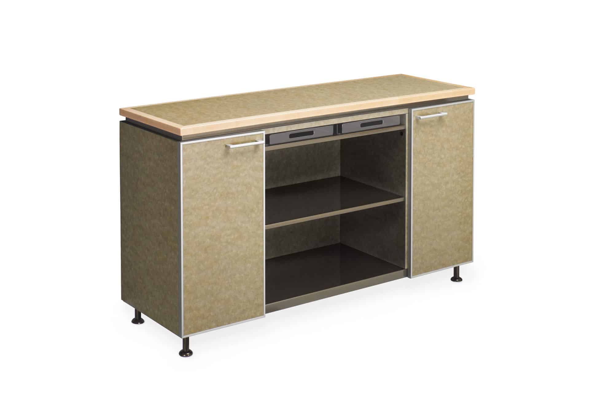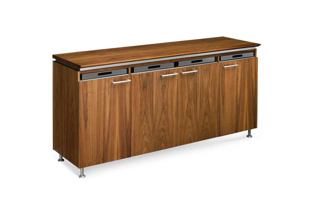 Entourage adds a practical finishing touch to community and collaboration spaces. Storage cabinets come in a variety of open shelves/door combinations. Recycling cabinets provide access to hidden compartments and are customizable with recycling plates.