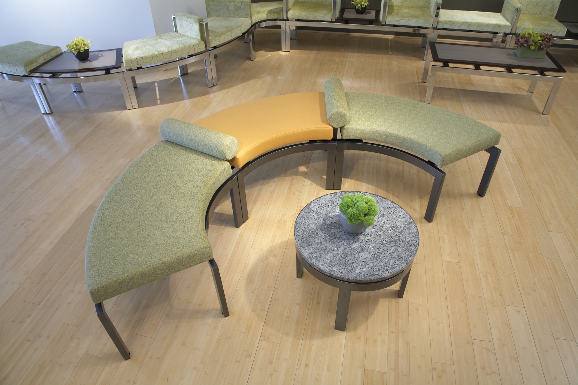 Immix is the modular bench system for creative seating solutions. Combine curves and straight sections for unlimited configurations and spans. Mix and match seats with a variety of top shapes, materials and edge options. Add power and specify a bolster for just the right touch.