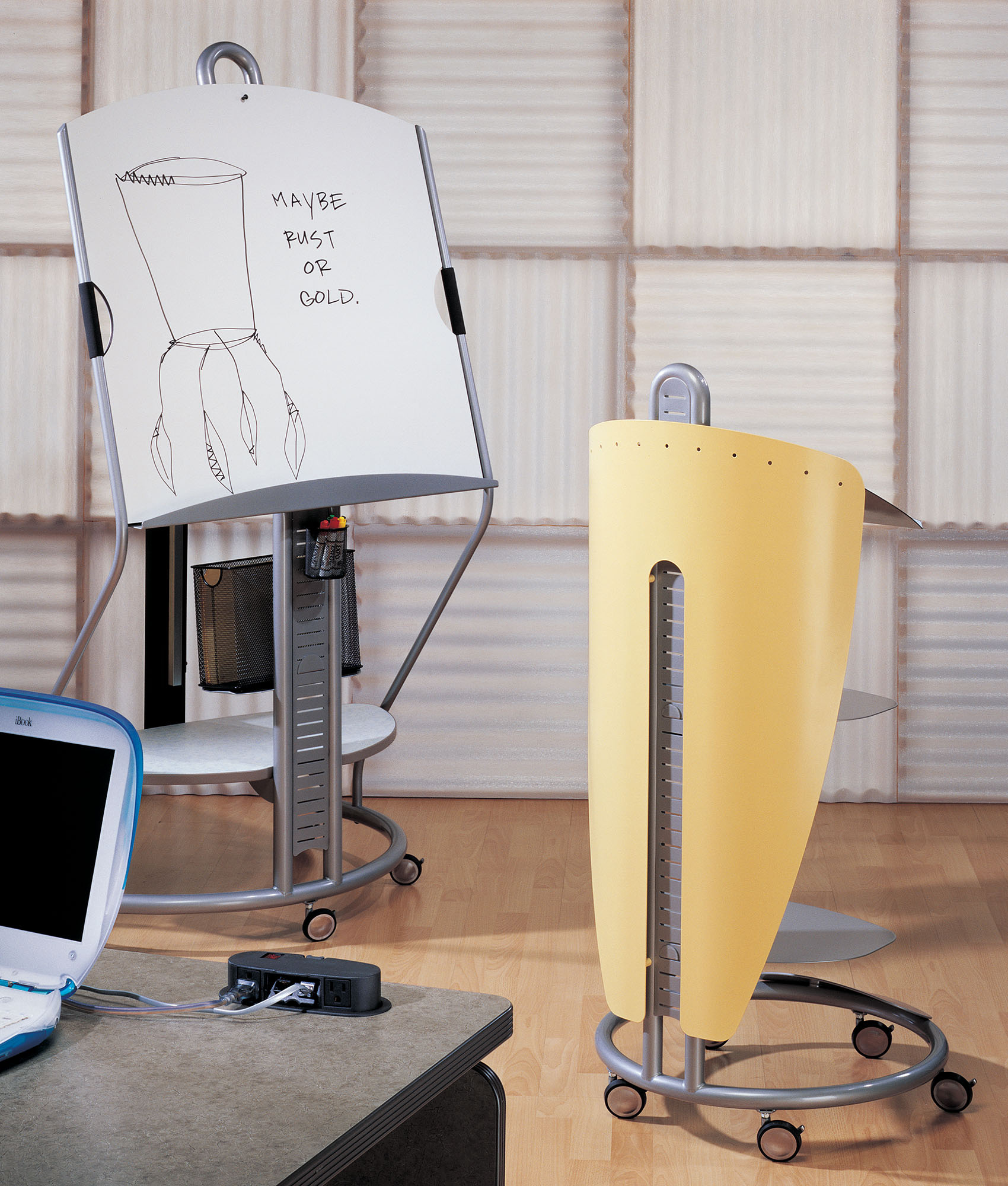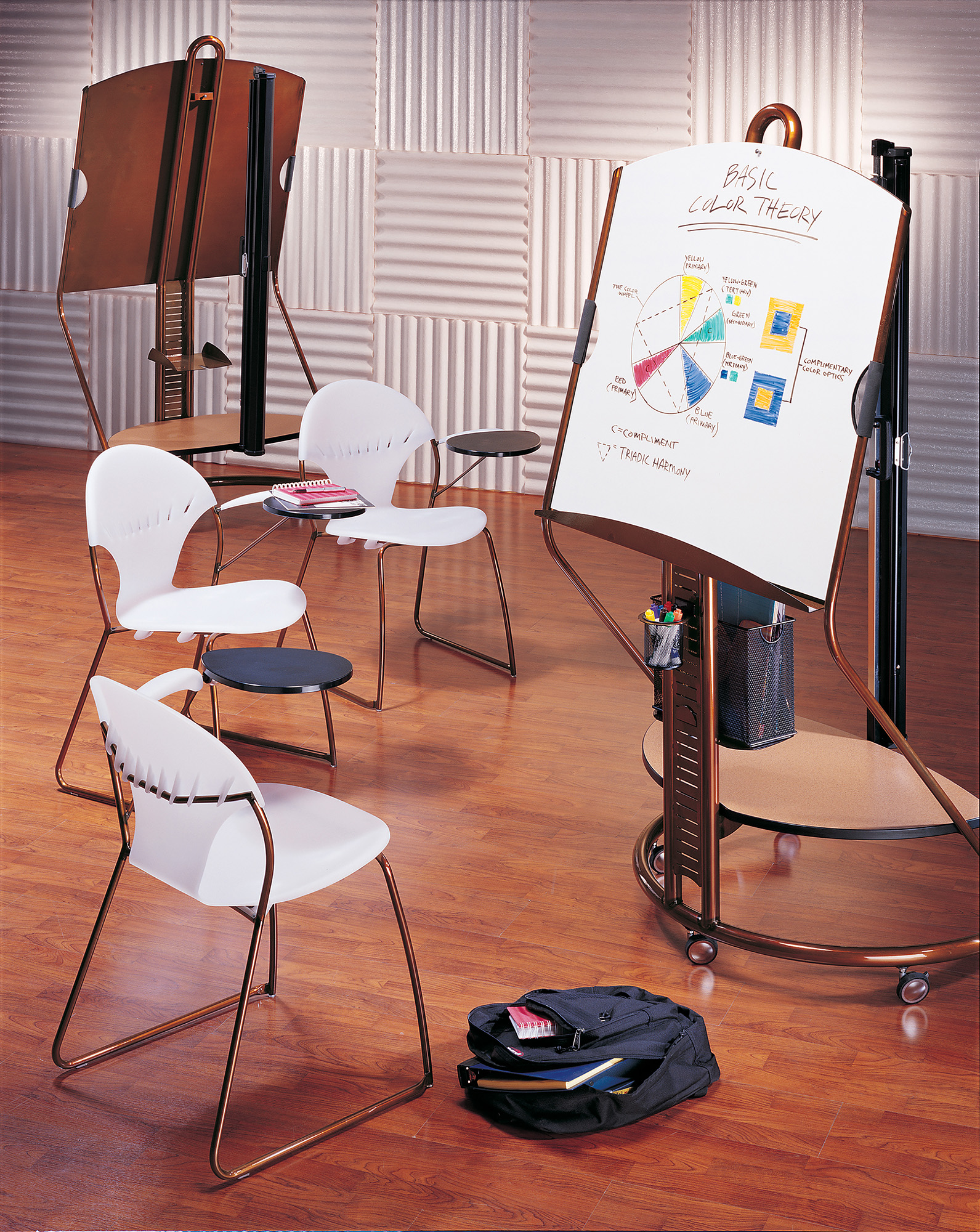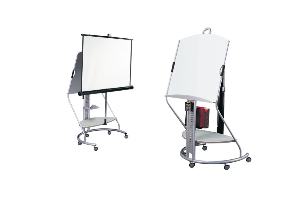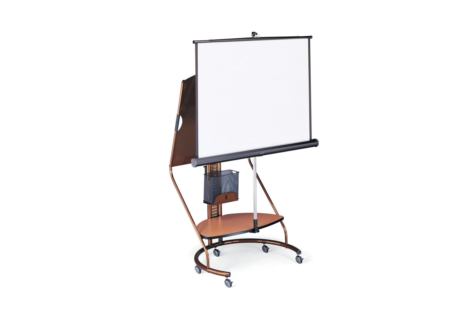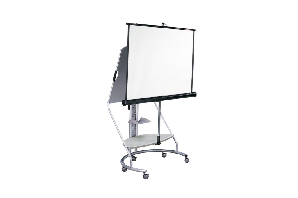 Play well in any space. Interplay Looksee is a mobile multimedia presentation station with a whiteboard and projection screen. Storage options include a shelf for equipment, adjustable paper tray, marker cup and storage tray.