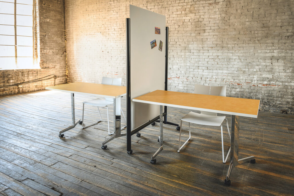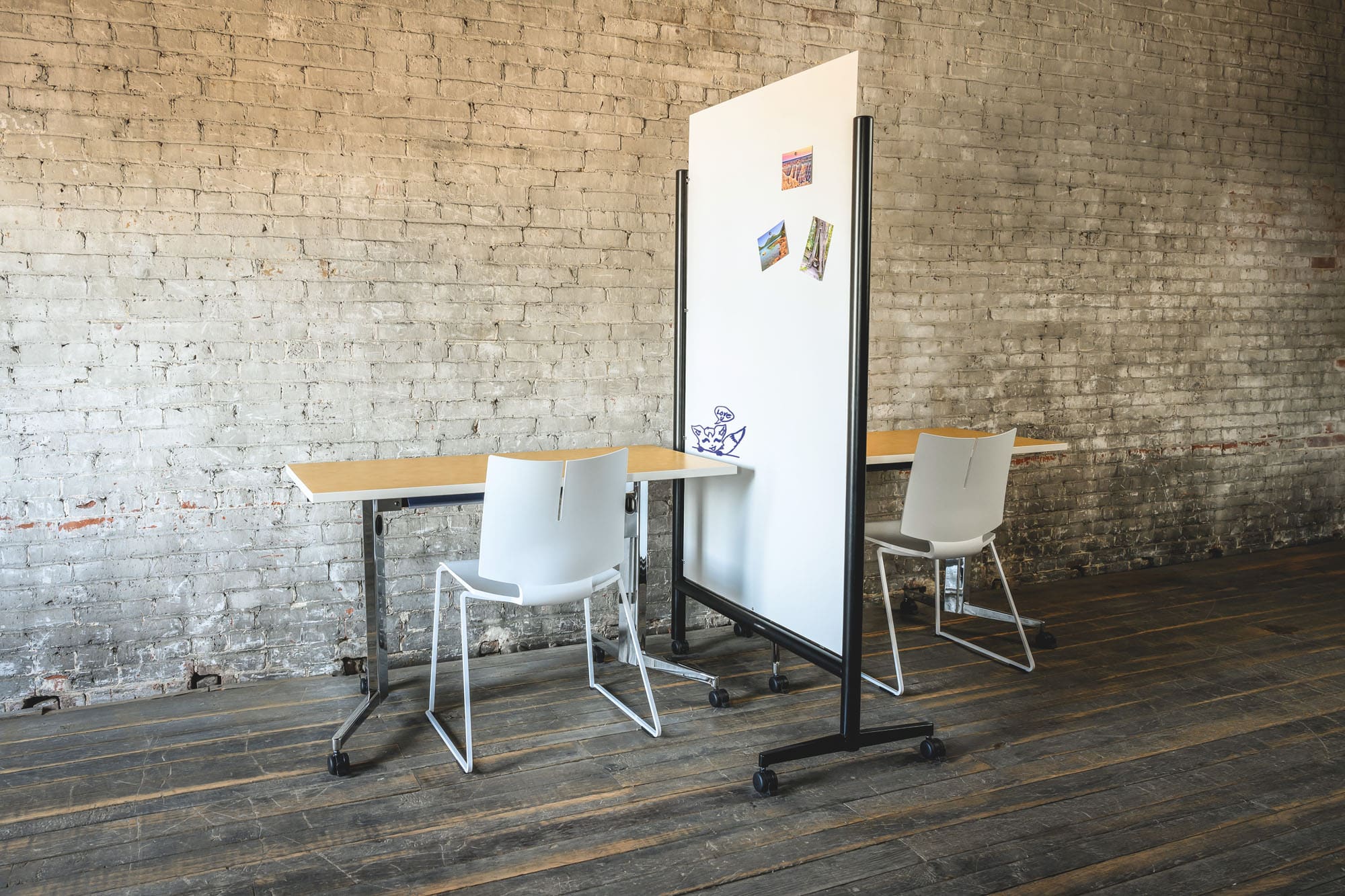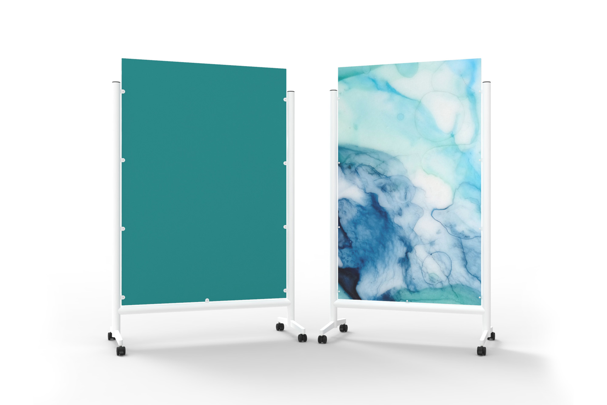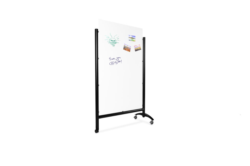 Ideal for multifunctional layouts, Mobile Screens can be easily moved to support division and privacy. A selection of five base styles seamlessly coordinates with the Versteel collection. Each style offers two variations for wider spaces or a slim fit between adjacent tables. Screen choices include frosted acrylic, clear acrylic or a naturally magnetic powder coated metal.