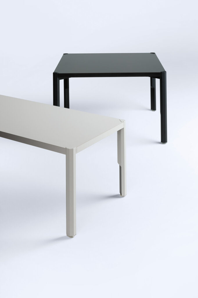 Model 8 commands attention with its artistic sense. Each table features unique, octagonal legs which are accented beautifully with a contrasting steel inlay. The distinctive extruded aluminum legs are offered in five microtexture colors as well as Versteel’s standard powder coat offering. Intentional dimension break from the norm. Choose from four heights: 14.5, 16, 18 and 22 inches.