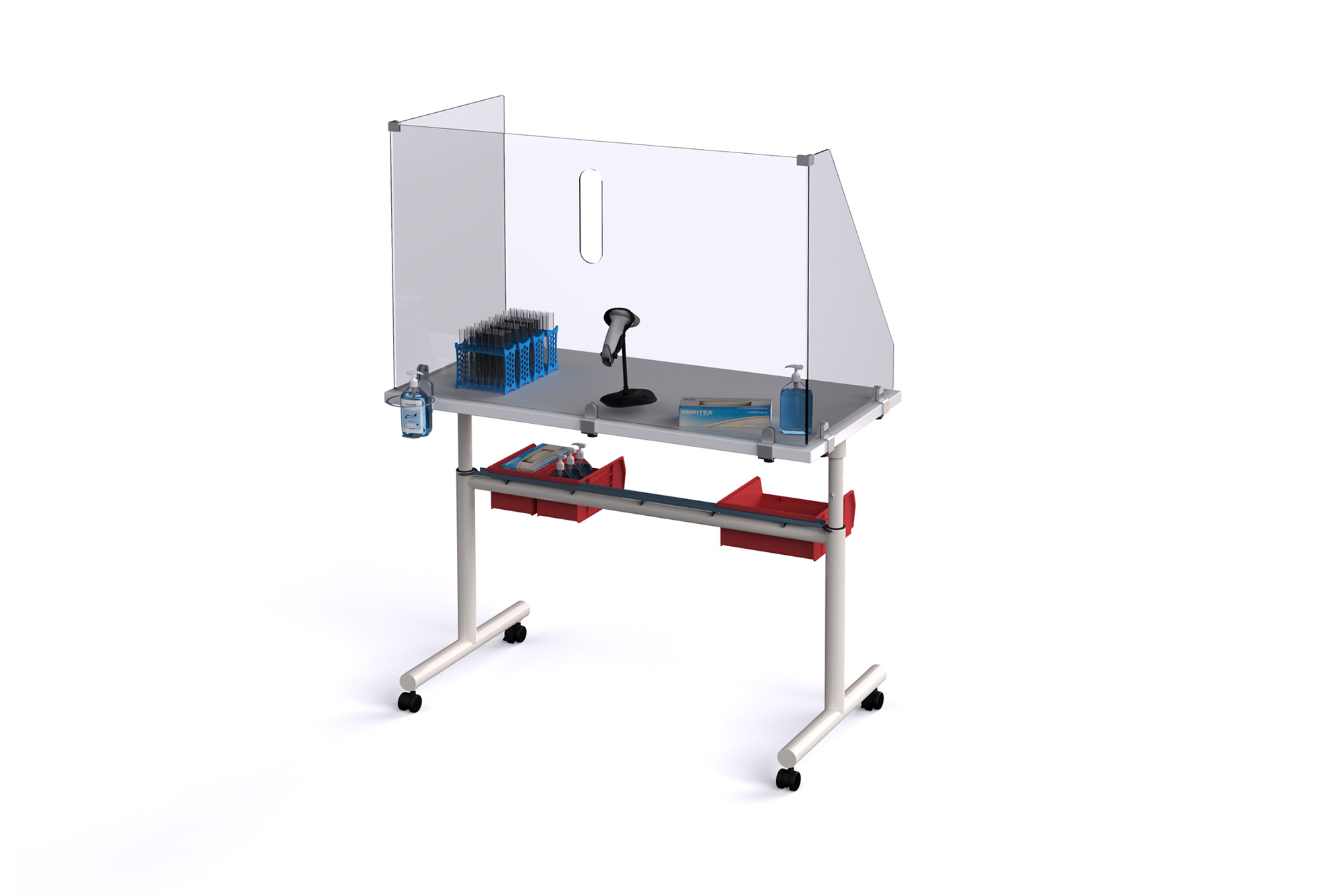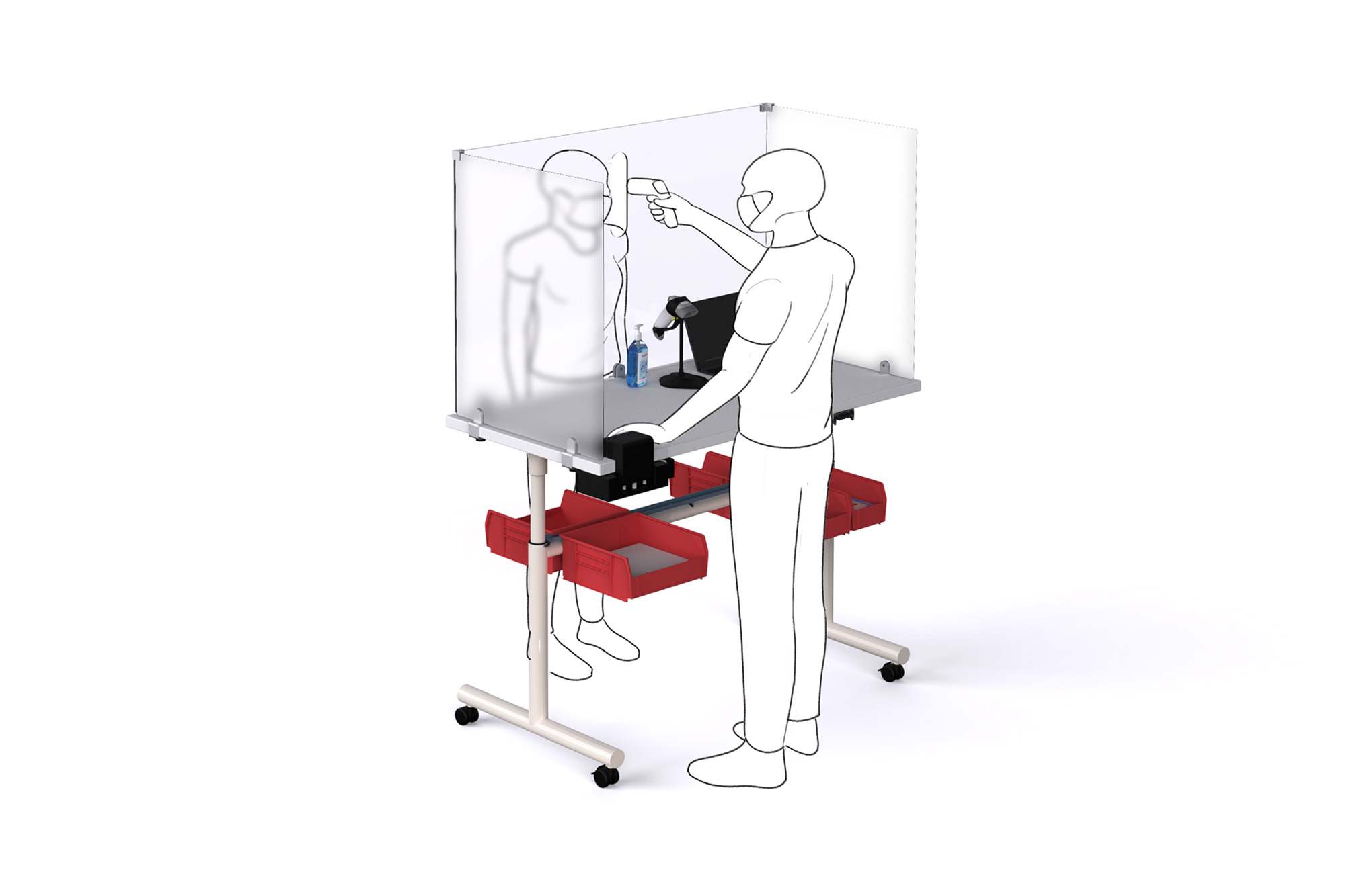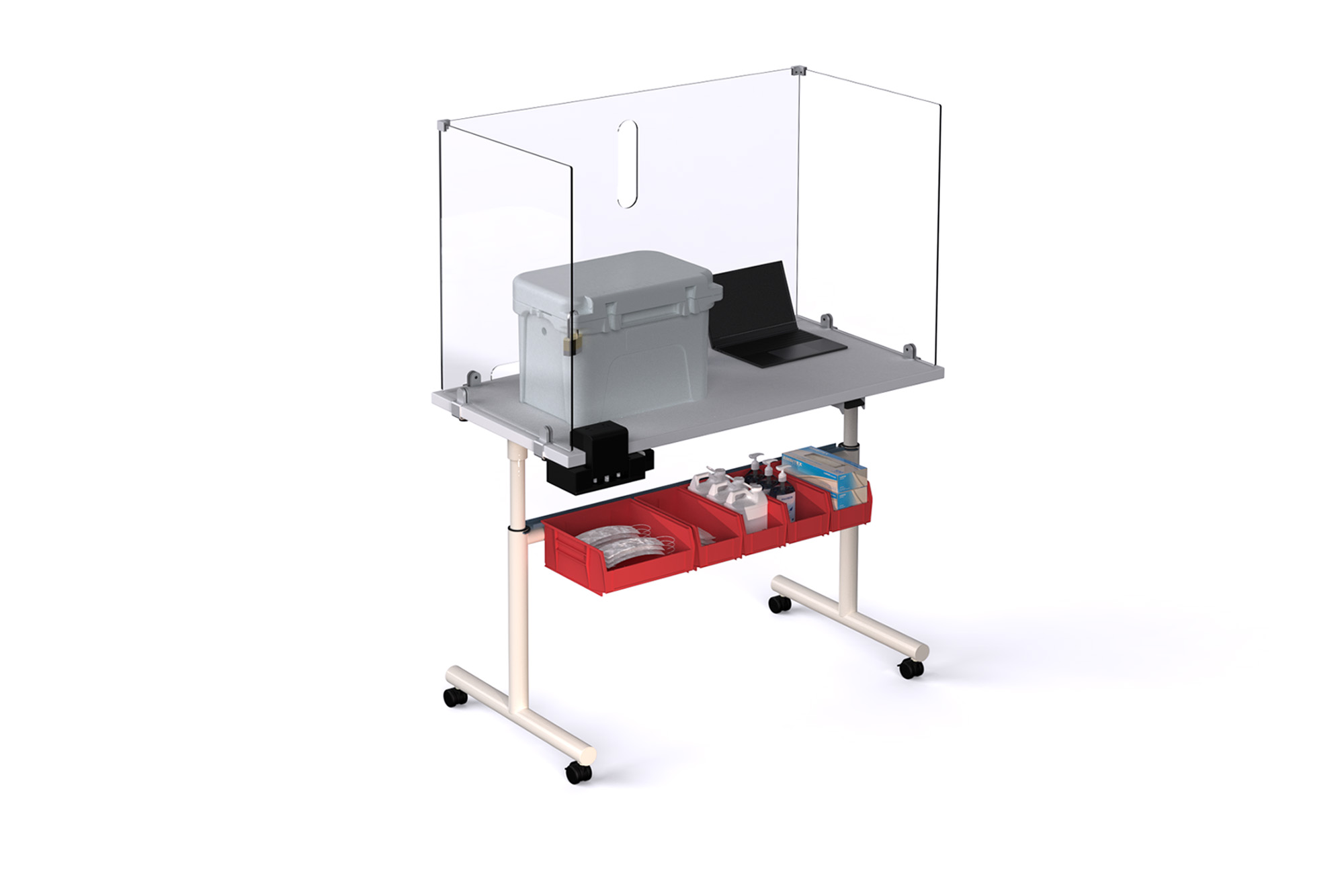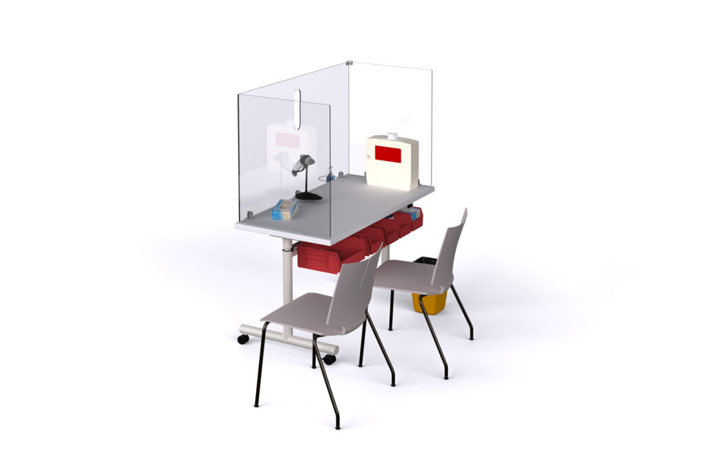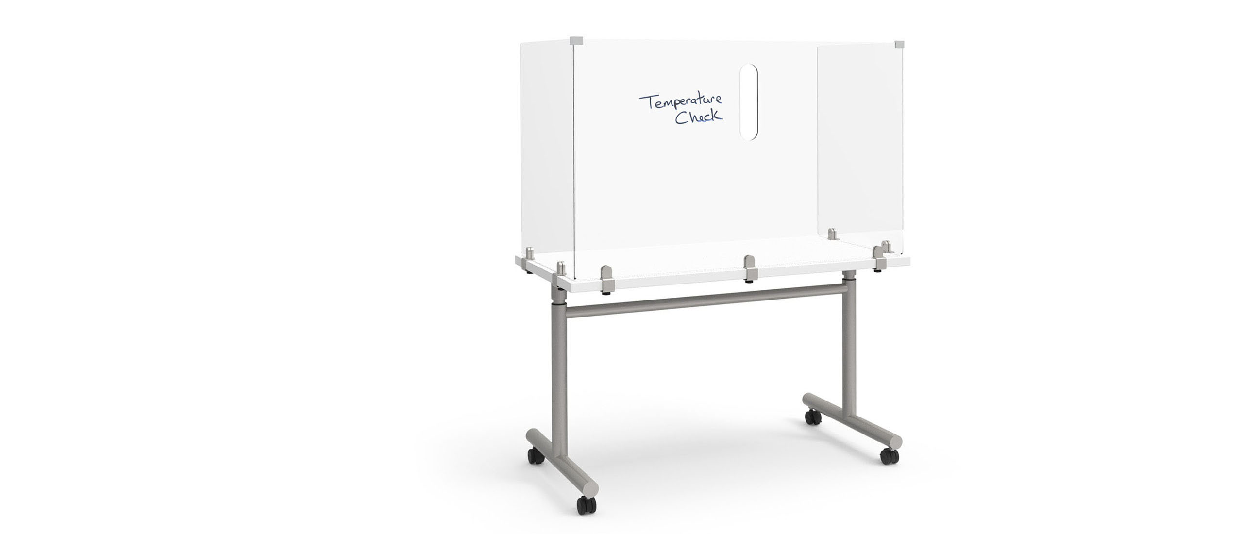 Carefully screen others with the protection and flexibility of the Sky Wellness Station. Built with the adaptability of the Sky adjustable height table, the wellness station can be adjusted to a desired surface height with the Versteel pneumatic height assist mechanism.