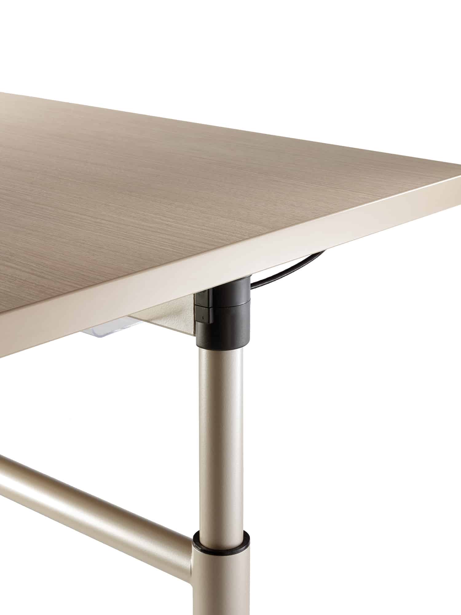 The patented pneumatic assist on Sky allows for a smooth transition from sit to stand (29” to 42”) or anywhere in between. Simply depress the paddle and gently guide the top to your desired height. Available in five base styles to seamlessly coordinate with the Versteel collection.