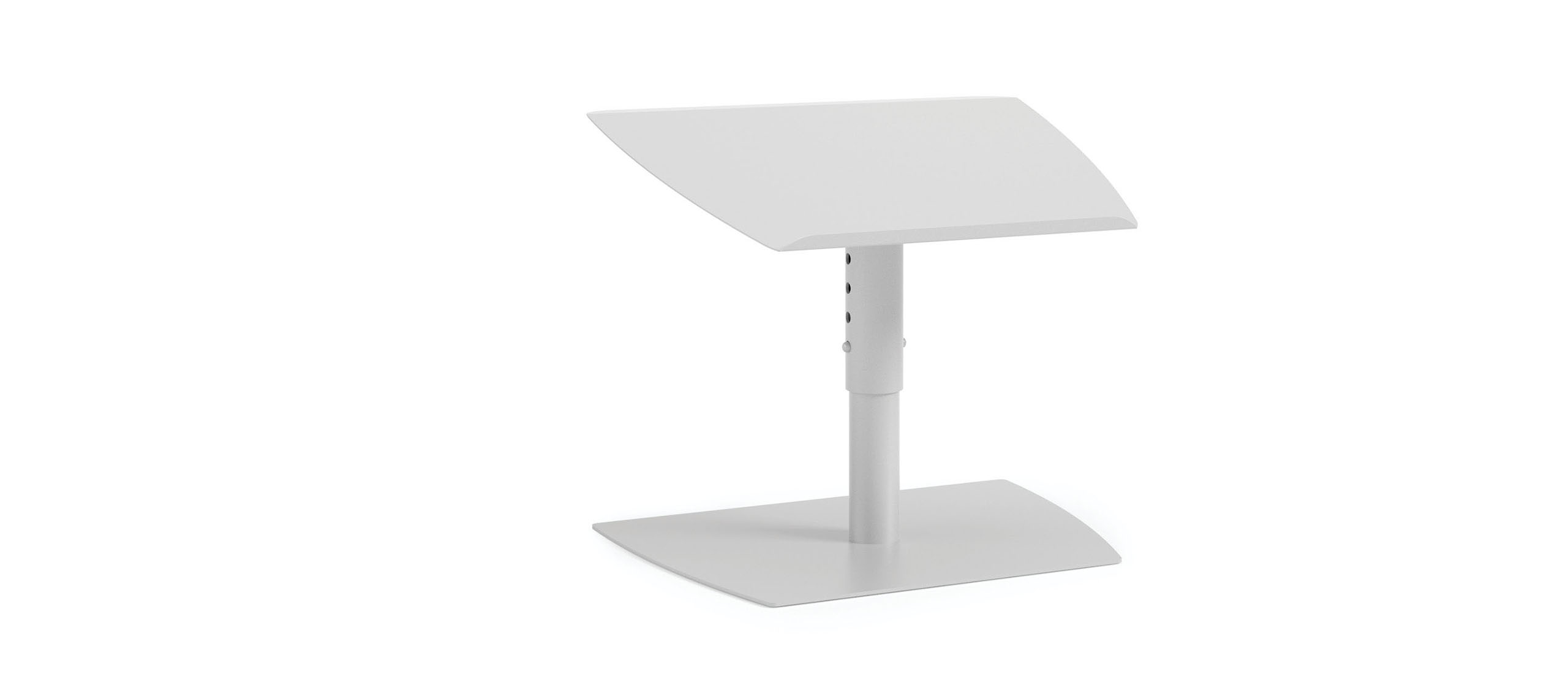 The pin-height adjustable Tabletop Lectern is a lightweight, portable speaking surface. An adaptable accessory, use it atop Versteel standing and adjustable height products to convert tables and stations into instruction podiums. The Tabletop Lectern is petite in size and easily stowable when not in use.