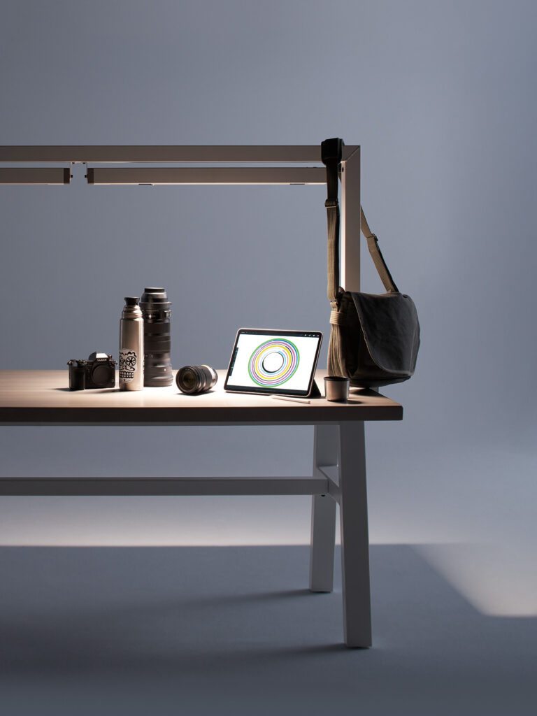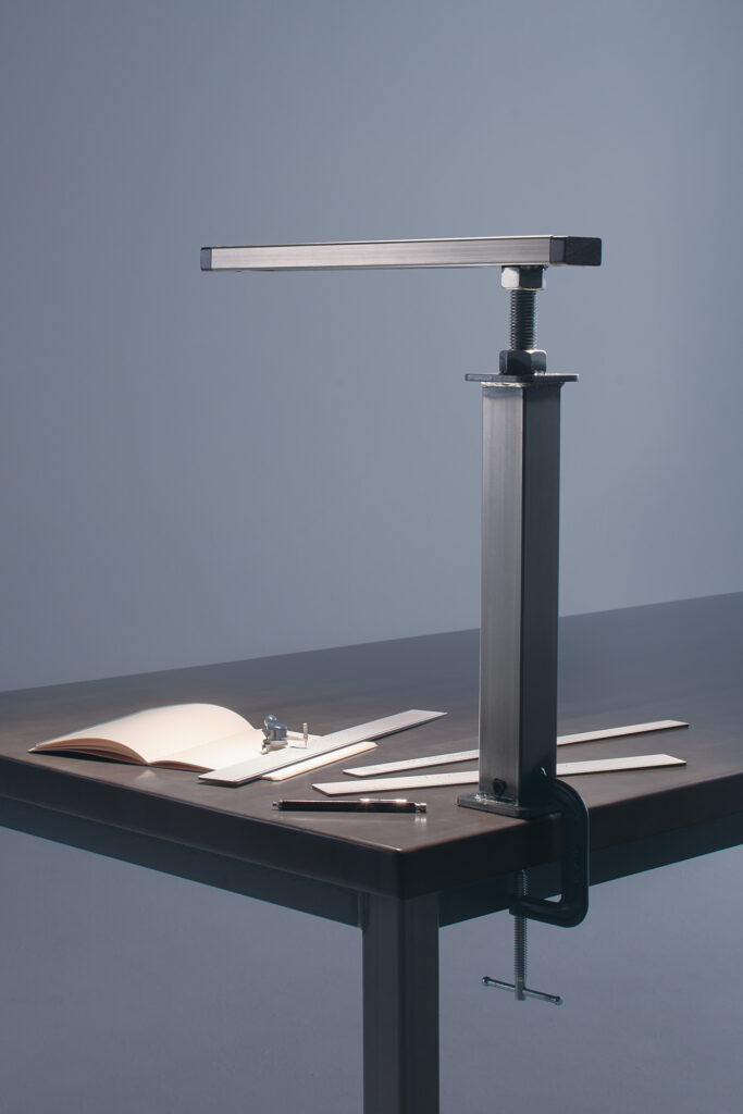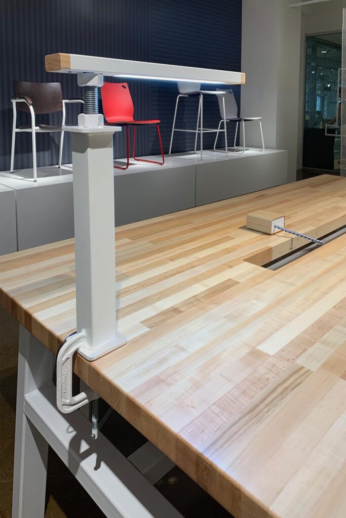 Embrace the potential of hands-on craftsmanship and the beauty of raw materials with Maker Lighting. This inclusive series of tables and seating also offers functional lighting solutions in three distinct styles: a floor lamp with pendant shade, a clamp on light or full-length light bar.
