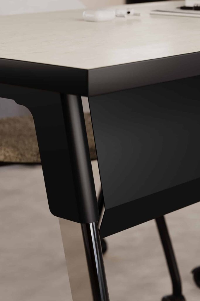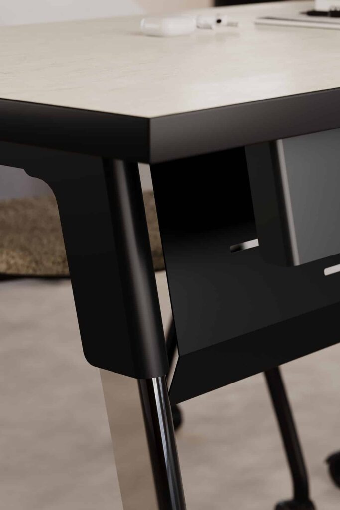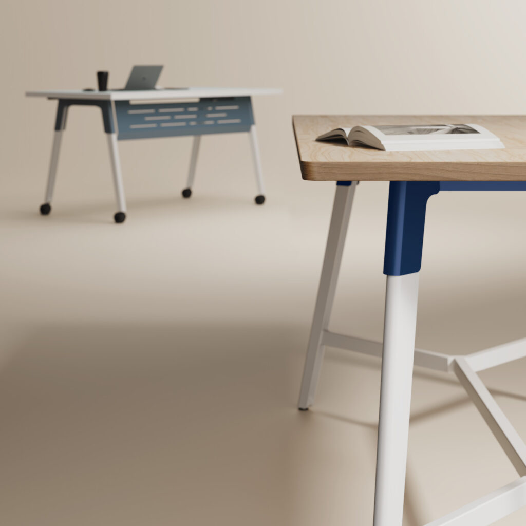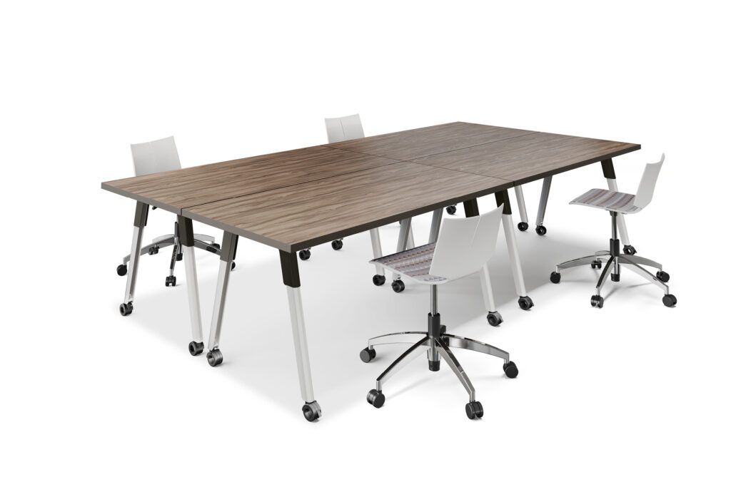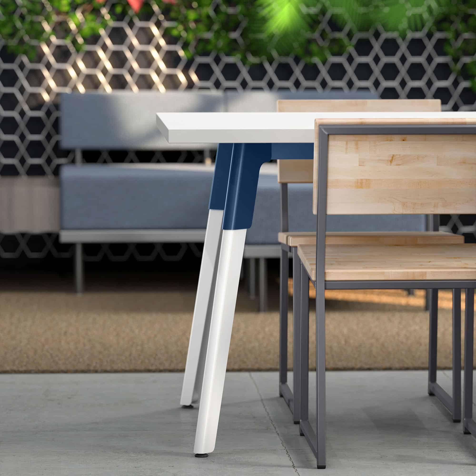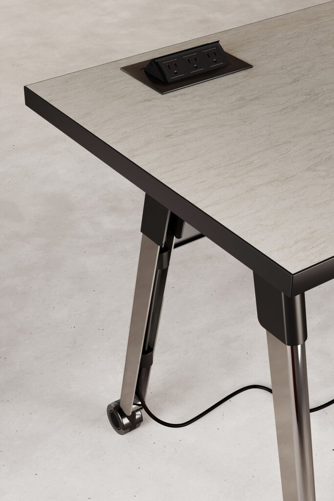 Strong lines and soft curves collide into a beautifully dynamic aesthetic with Troupe. The tapered steel legs are formed and layered into a unique, inverted profile. Outfit Troupe with various power and data solutions and conceal wires within the concave leg. Gathering tables are available in three heights and three top shapes. Rectangular inline tables feature a variety of functional choices.