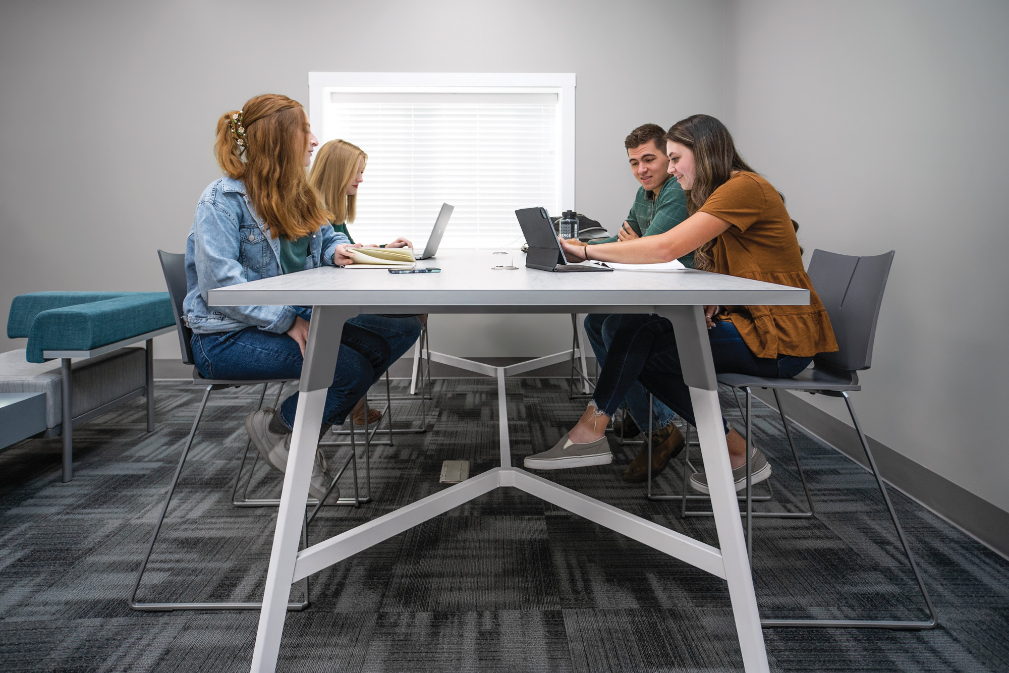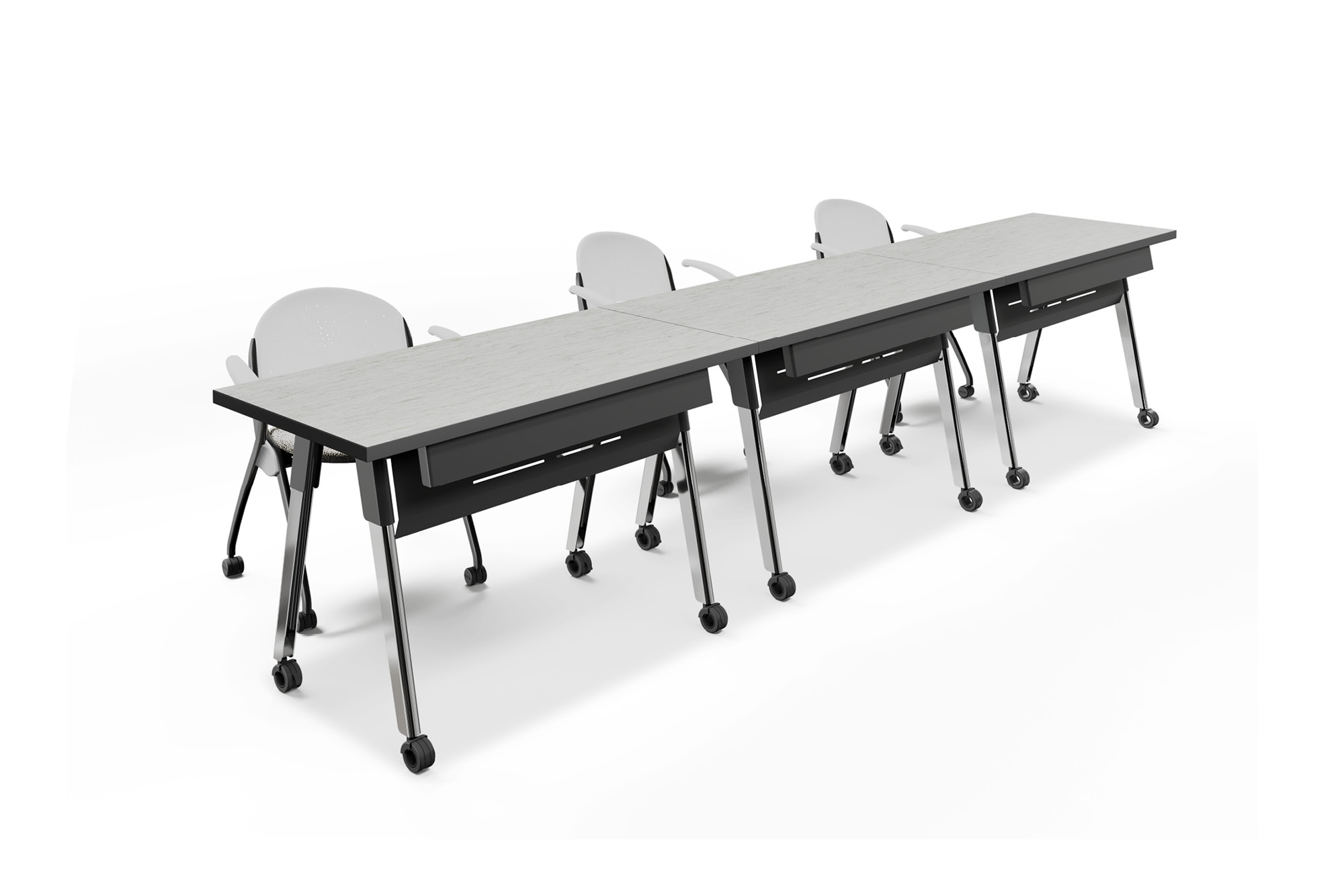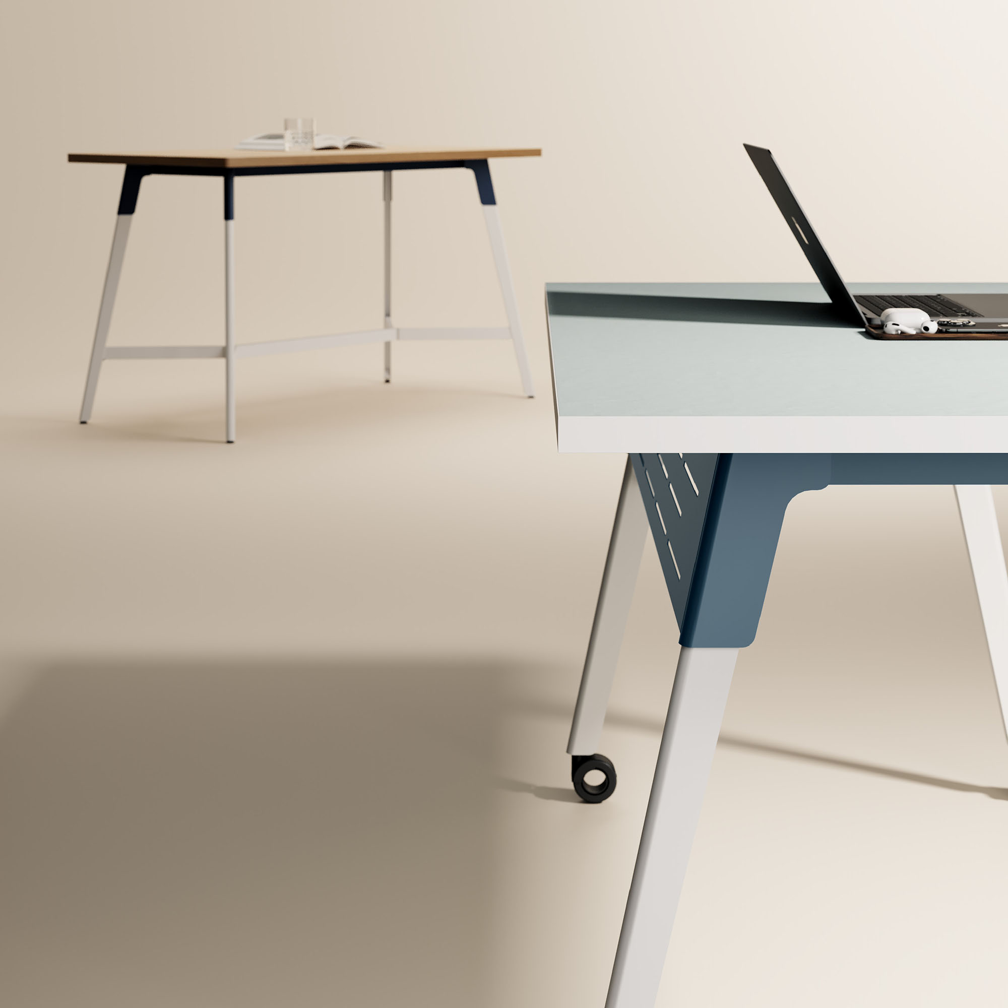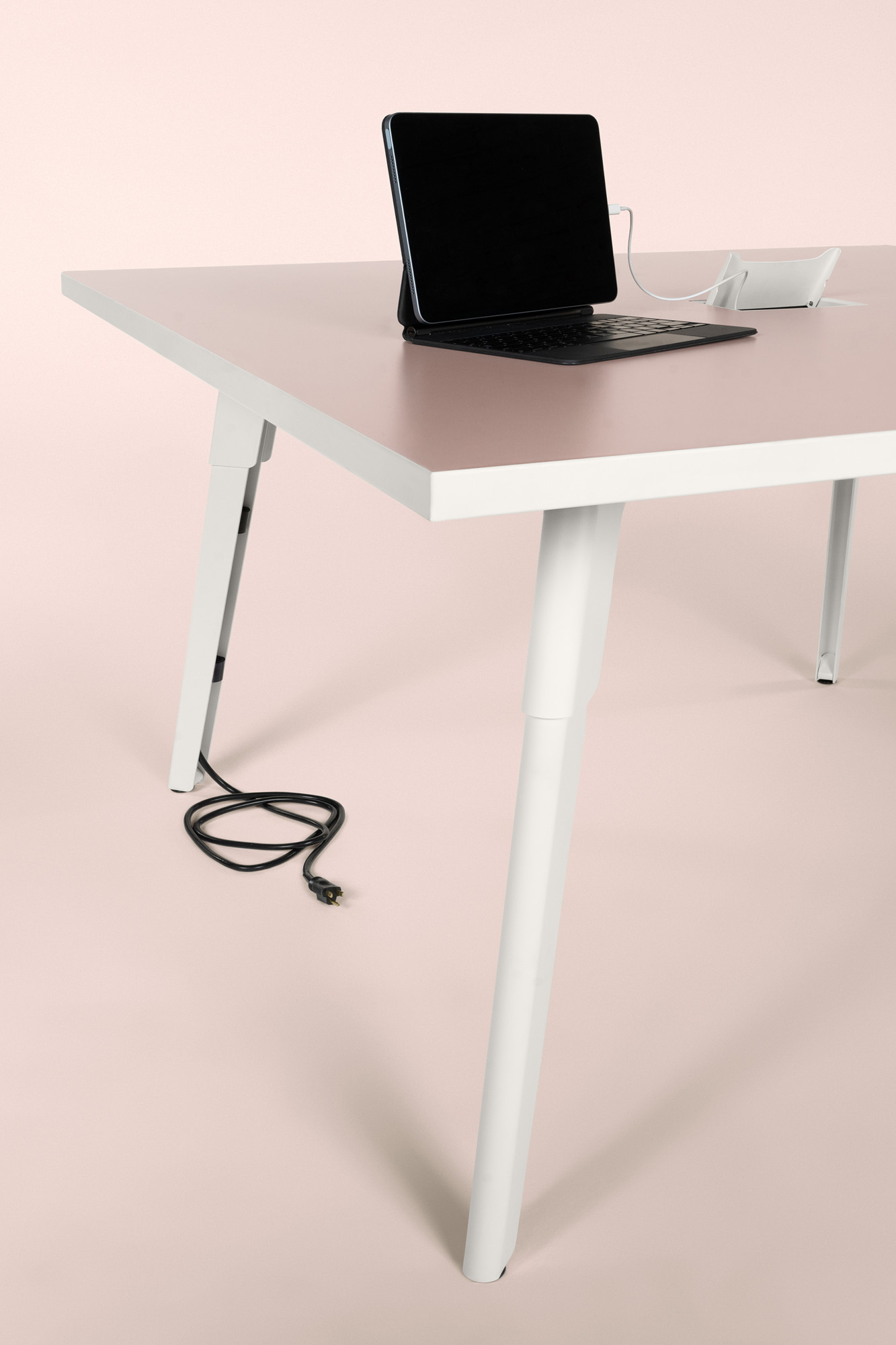 Strong lines and soft curves collide into a beautifully dynamic aesthetic with Troupe. The tapered steel legs are formed and layered into a unique, inverted profile. Outfit Troupe with various power and data solutions and conceal wires within the concave leg. Gathering tables are available in three heights and three top shapes. Rectangular inline tables feature a variety of functional choices.